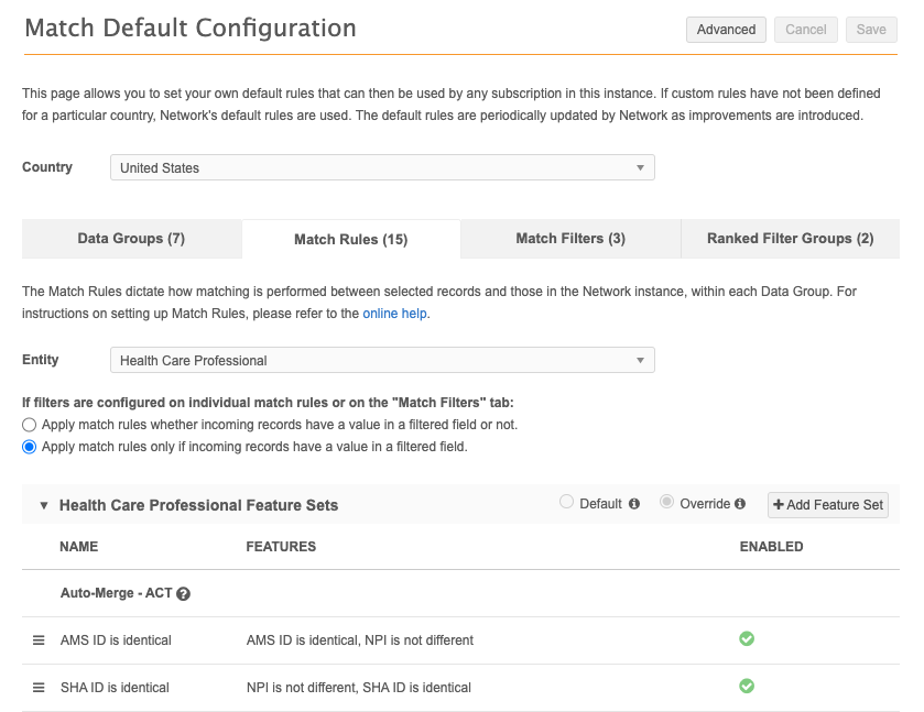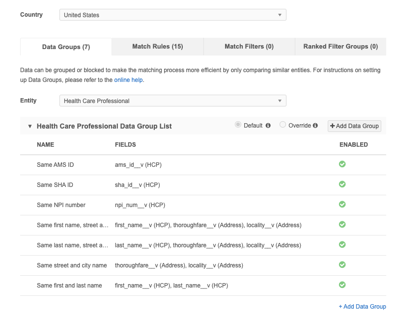 If you make changes to the Default match configurations, Veeva will not automatically update the configuration when enhancements are introduced to avoid overriding your custom rules.