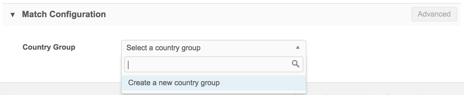 In match configurations within Network features, you must select a Country Group, consisting of one or more countries: