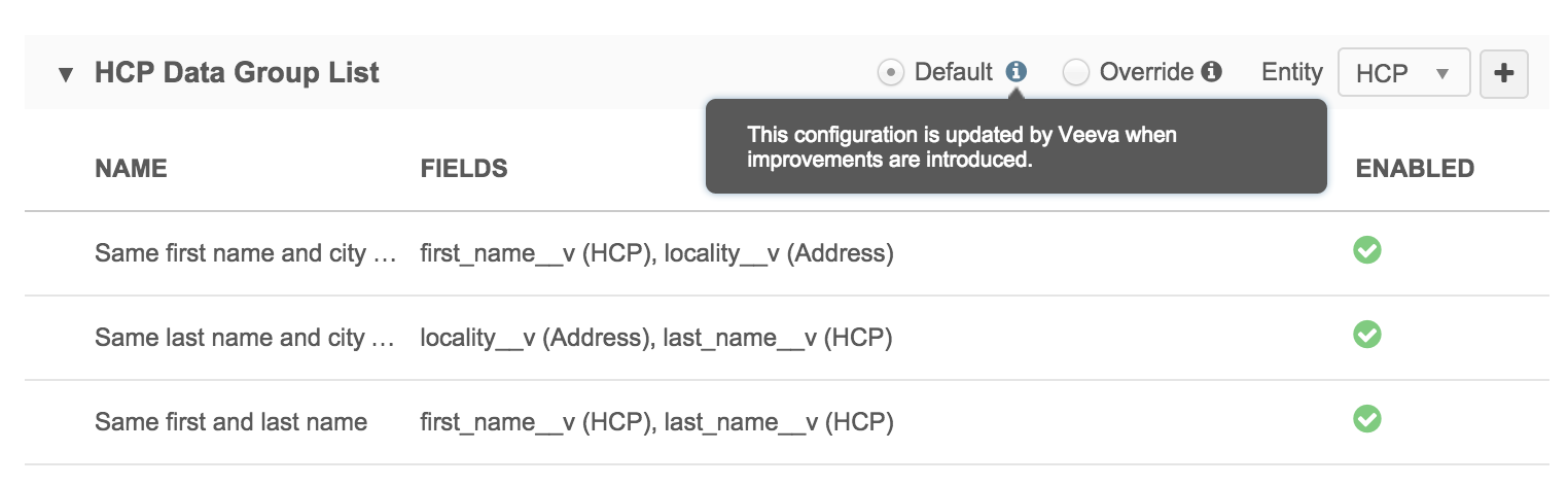 When the match configuration is set to Default, it will be updated automatically when Veeva introduces enhancements.
