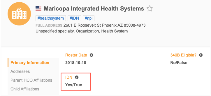 Use the #keyNetwork or #IDN hashtags to find these HCOs in your Network instance. The hashtags are dynamically applied to HCOs that have the key_hco_network__v field set to Yes/True.