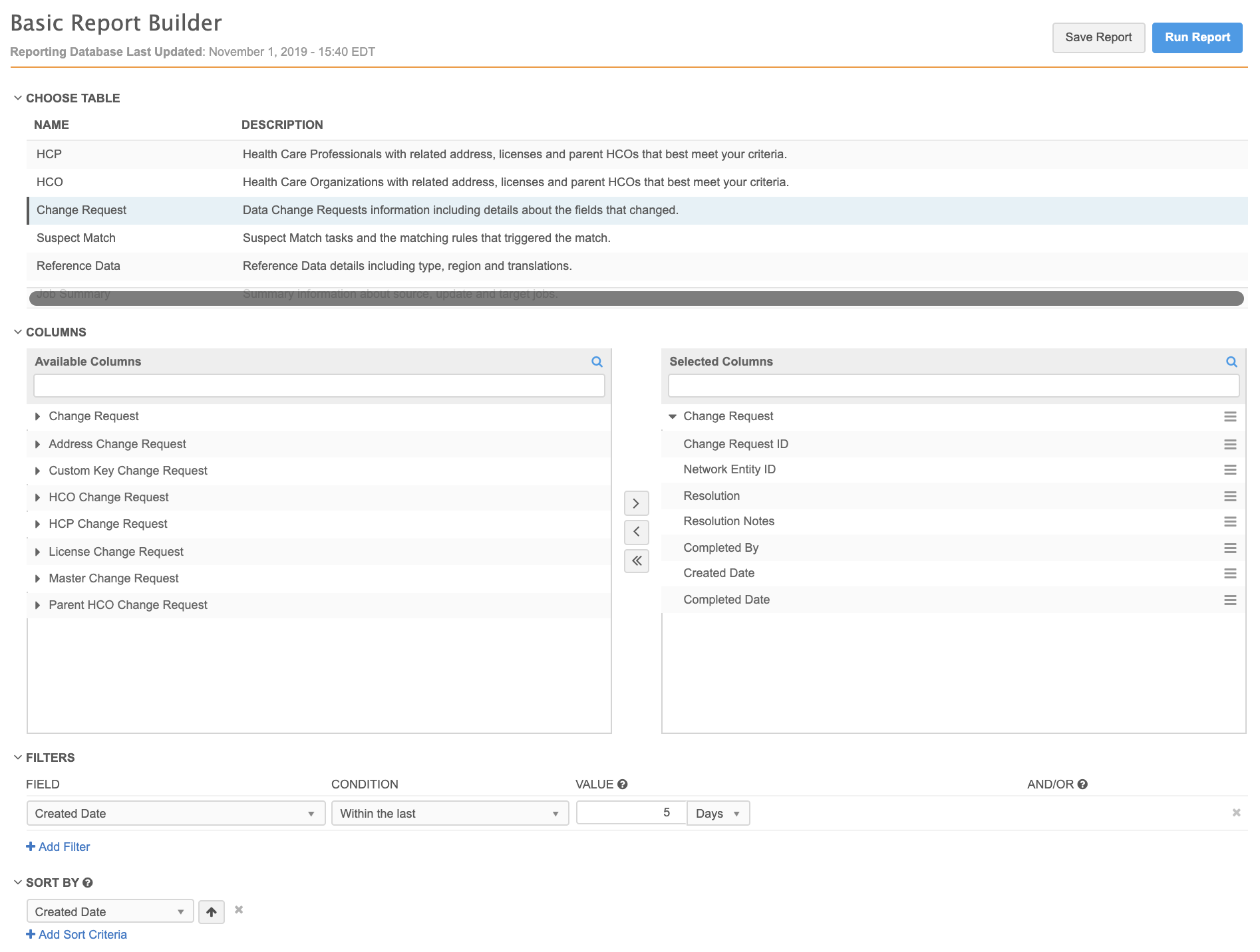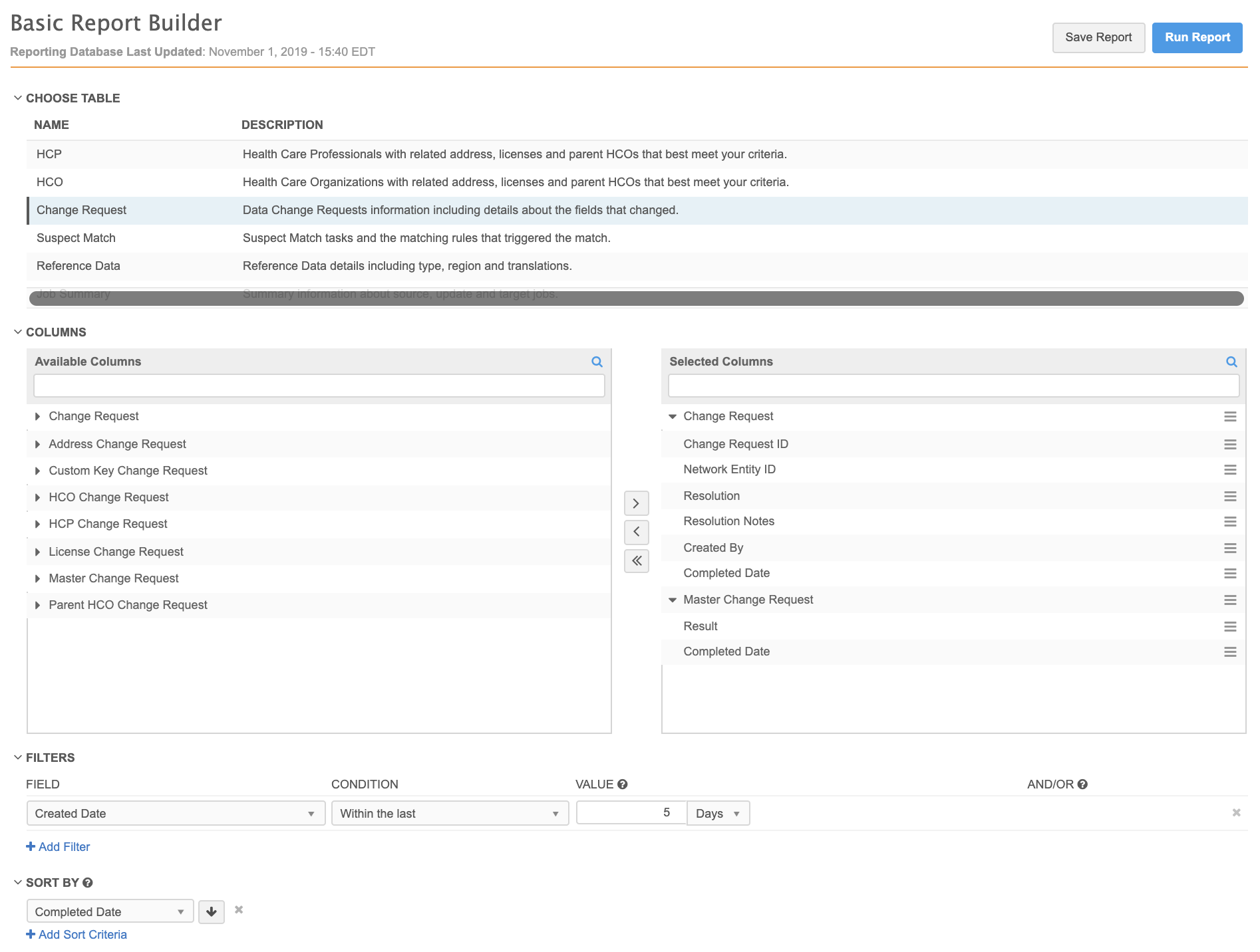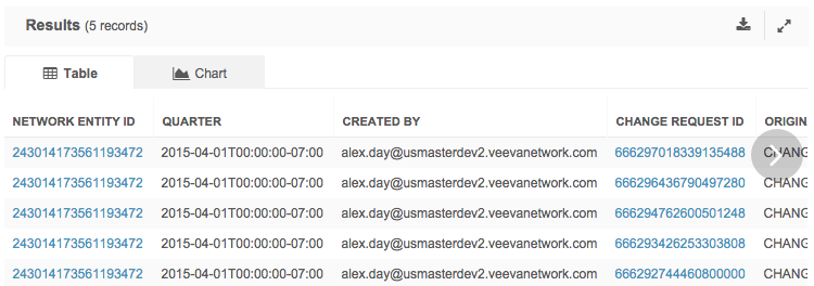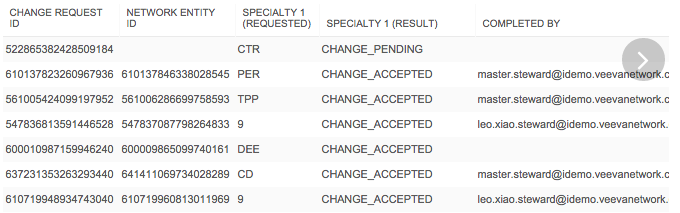 A request to change data from Veeva CRM, the Network API, or from within the Network user interface. Change requests are processed by either customer or Veeva data stewards, depending on ownership of the data being changed. is contained in tables with the prefix change_request. Core information about change requests, such as the resolution date and user, are contained in the change_request table.