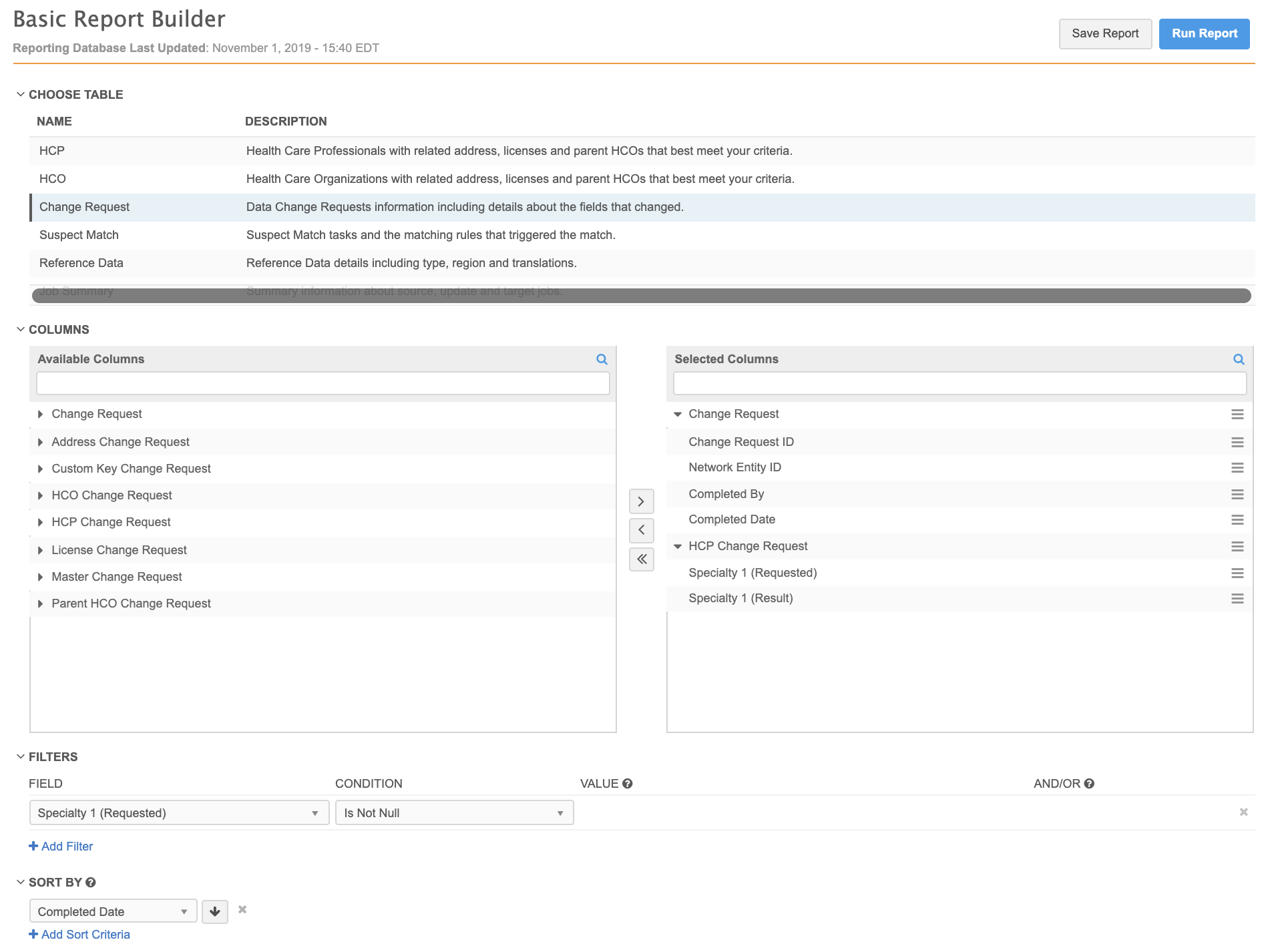 - Address Line 1 OR Specialty 1 requested change is not null (DCR creator requested a change to one of the ‘key’ fields)