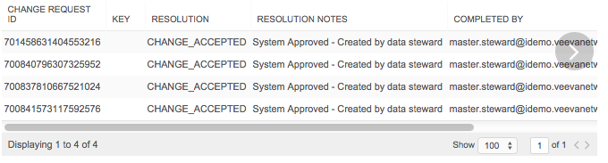 Date and time the change request was reviewed and resolved by a data steward or the Network application. |