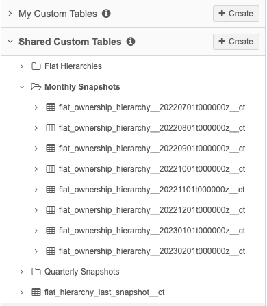 Tip: You can create Shared folders to organize the tables that will be created. For example, create a folder called Monthly Snapshots. For more information, see Custom tables.