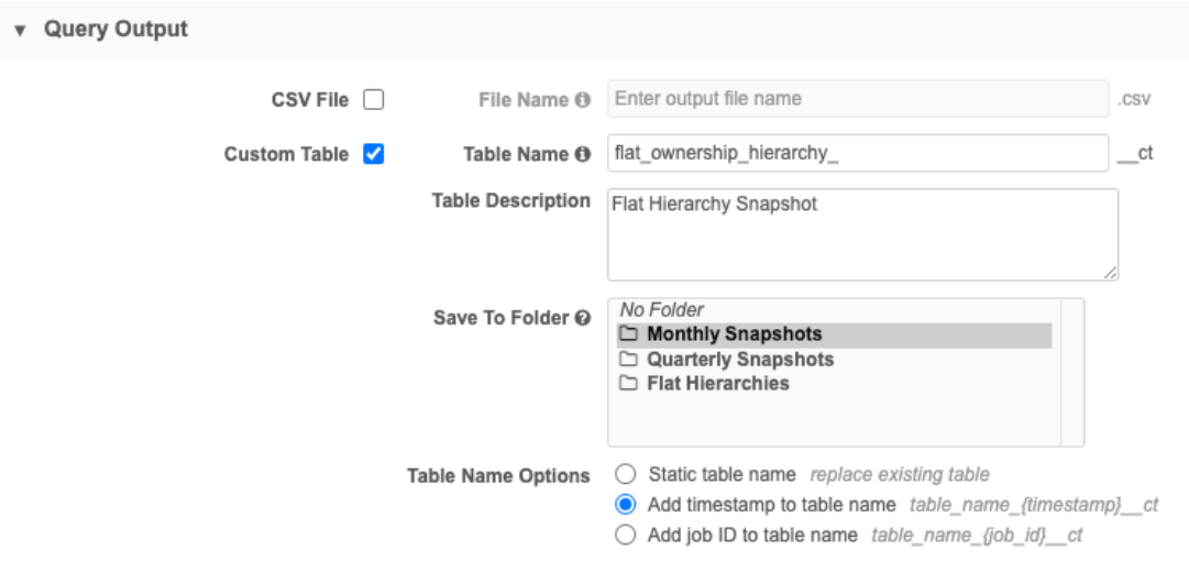 Save to Folder - Choose the folder in SQL Query Editor that the custom table will be saved to.