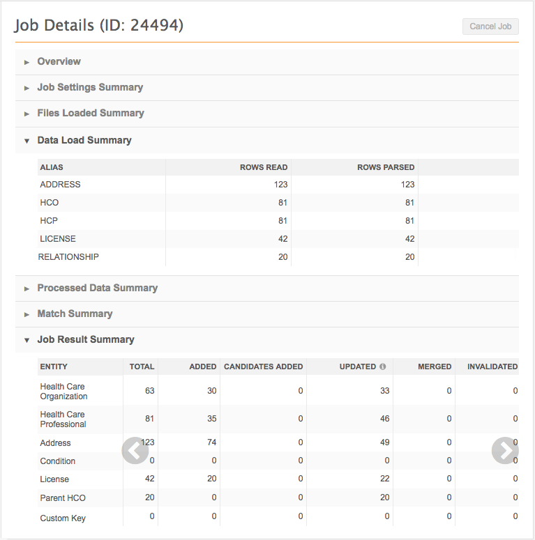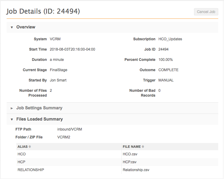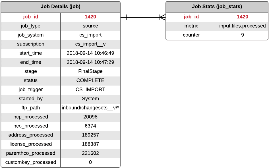 | hco_processed | HCOs Processed | Number of HCO records processed by the job. |