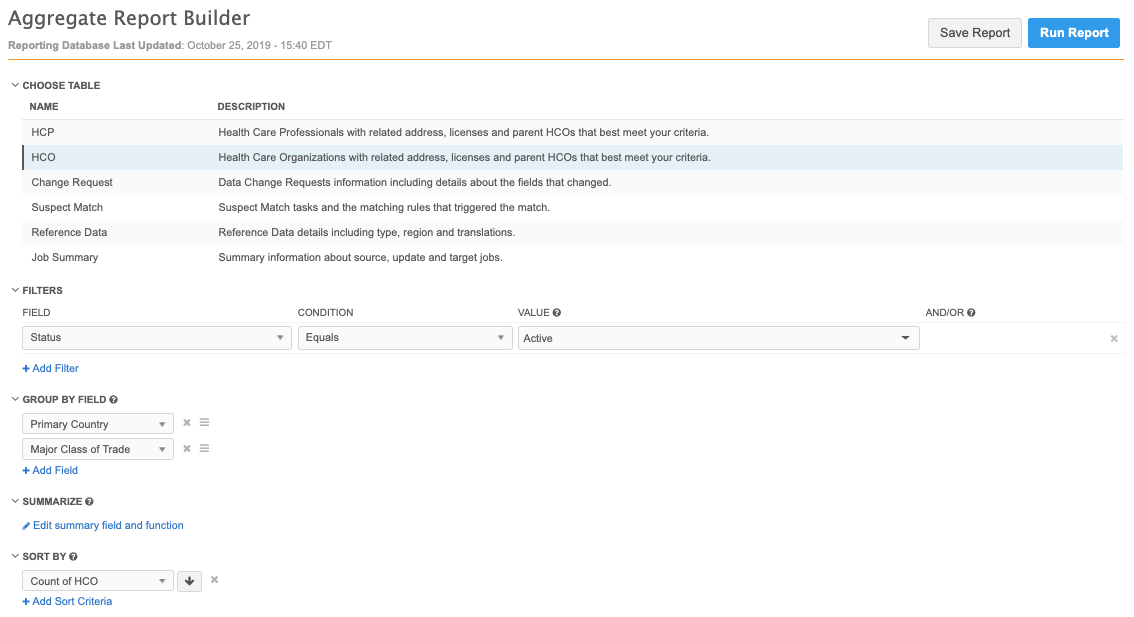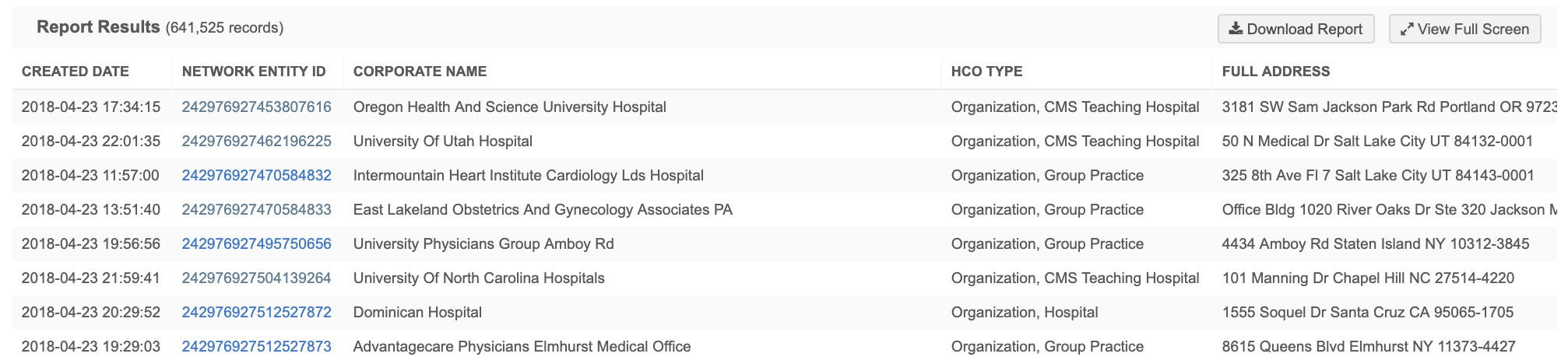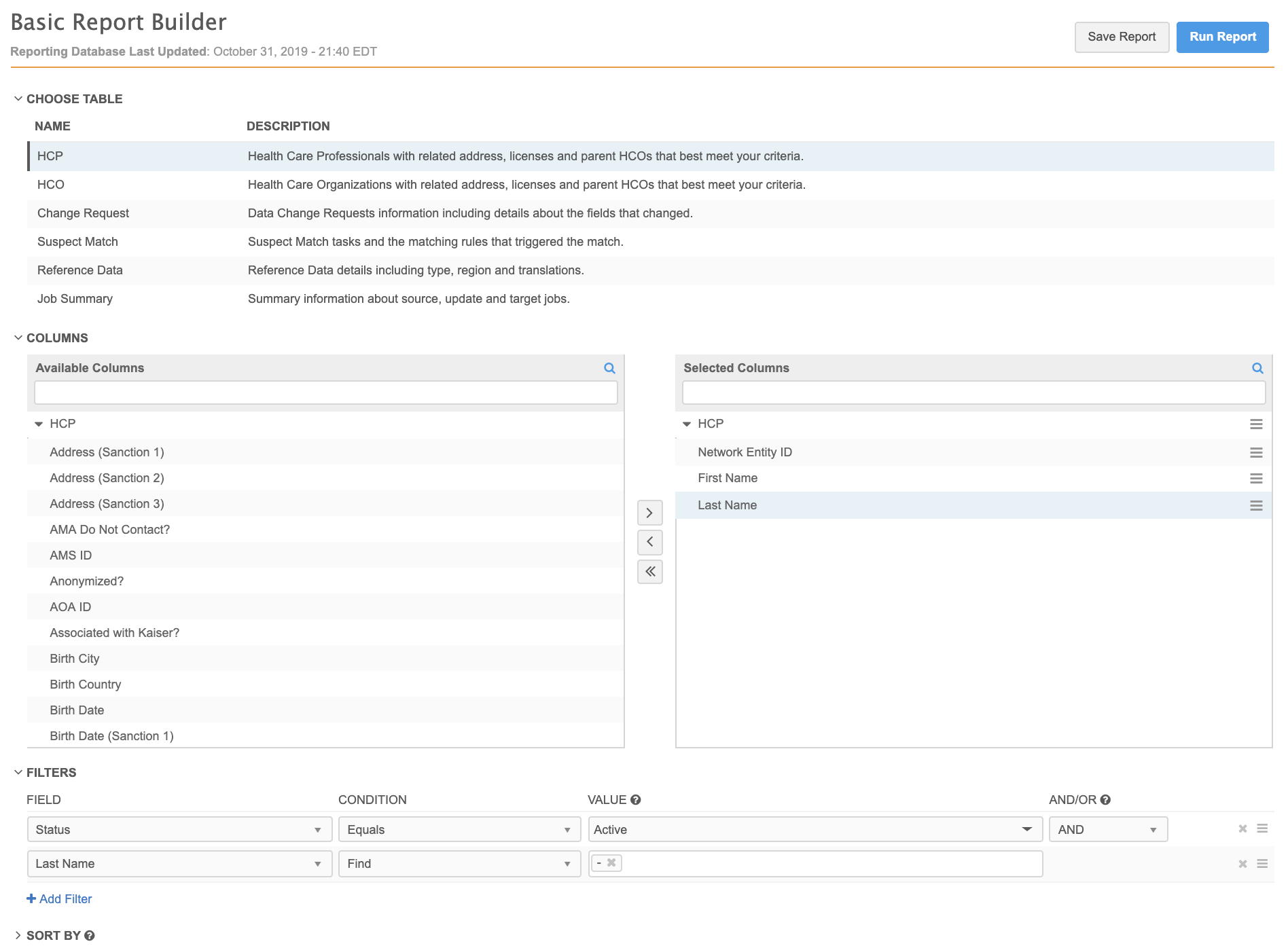 Note: There is no need to filter on address ordinal since basic report queries automatically select the best address that meets your criteria. You can also return the name of the primary HCO related to the respective HCPs.