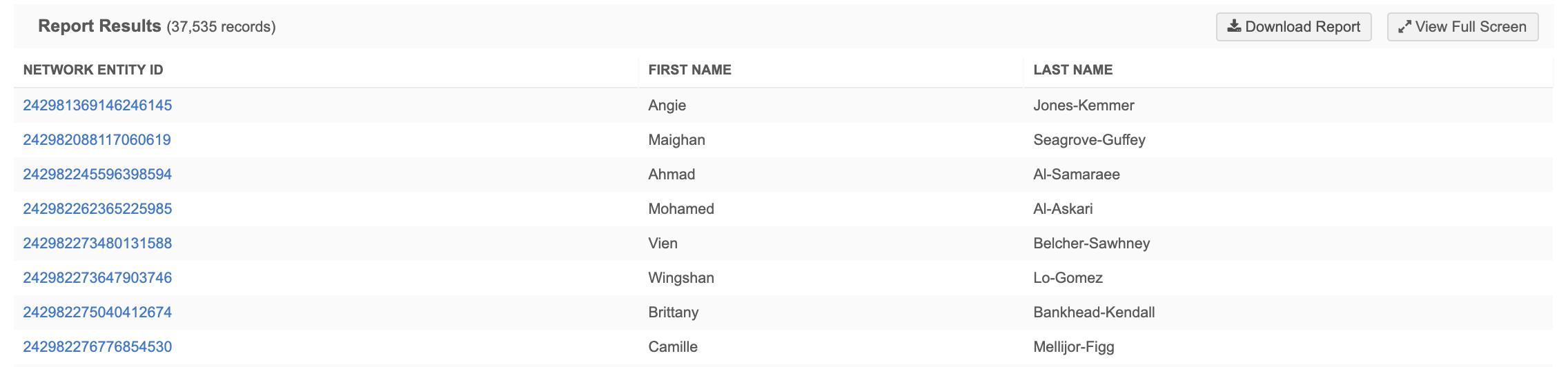 This example finds all HCPs with a hyphen in their last name and demonstrates regex support.