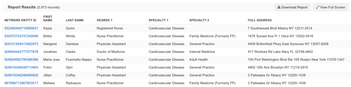 This example finds cardiovascular disease specialists licensed in the state of New York.