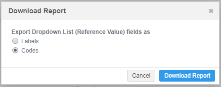 To ensure that both reference labels and codes appear in the downloaded report, specify Codes when you download the report.
