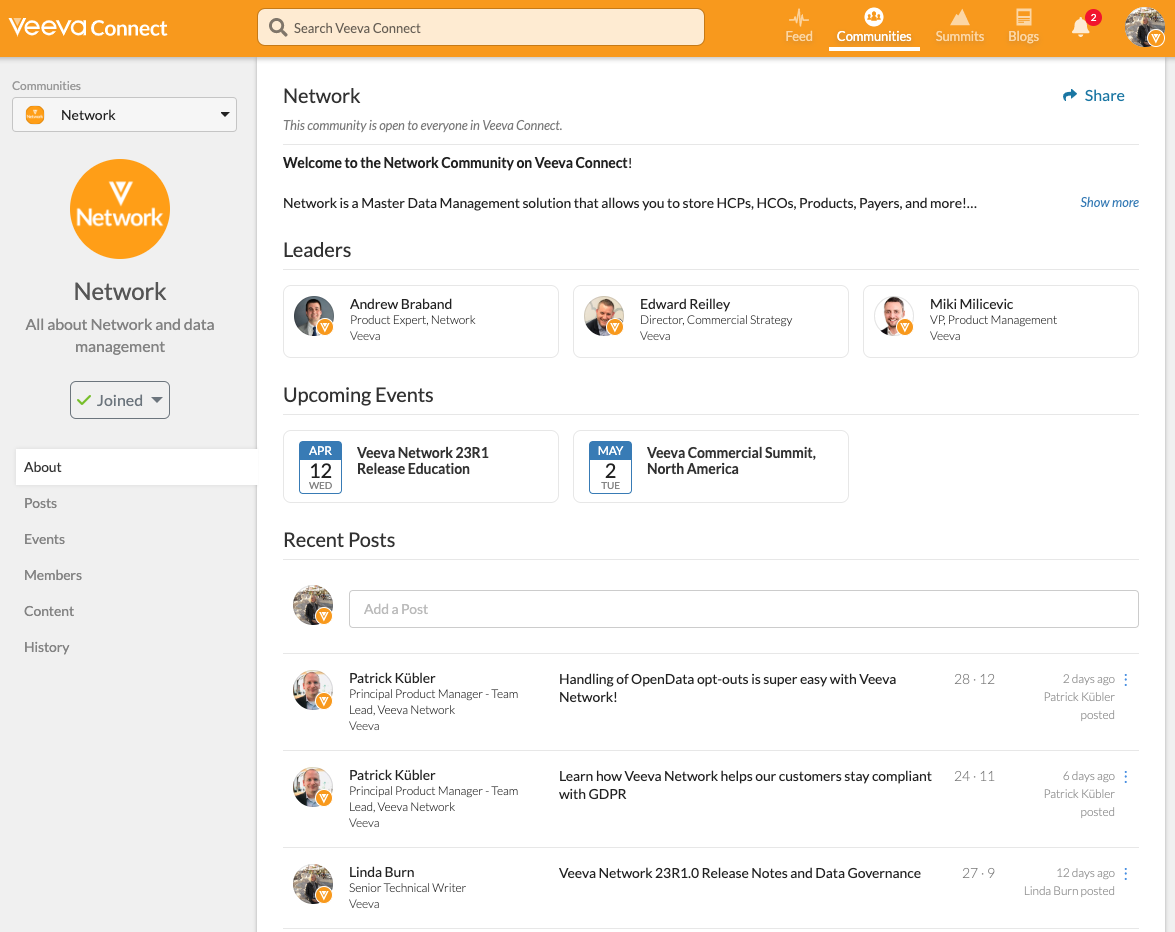 Veeva Connect is a customer community that you can join to collaborate with Veeva professionals and other customers.