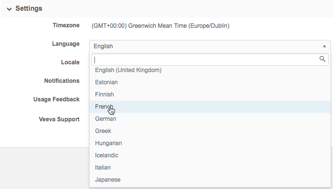 - In the Settings section, click the current language to edit the selection.
