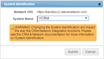 Edit the System Identification. Select the System Name for the CRM Production system that is used in Network; for example, VCRM.