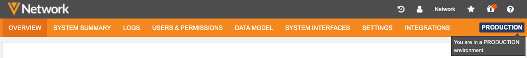 Production instances display a tag to help you quickly identify the environment you are using. These tags display for awareness, but also help prevent Admin and Data Manager users from accidentally changing data in the wrong environment, which can be time-consuming and costly to fix.