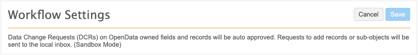 Sandbox is not connected to an OpenData instance (subsequent instances) - Data change requests on OpenData owned fields and records can be automatically approved in the following situations: