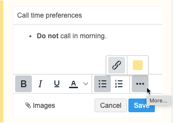 You can edit the title and message, add attachments (Images) and change the text formatting. Click the More button to add hyperlinks and change the note background color.