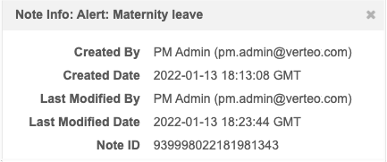 All notes contain details about the user that created it, when it was created, and when it was last notified. Each note also has an ID. You can use this information in a query to run reports on notes.