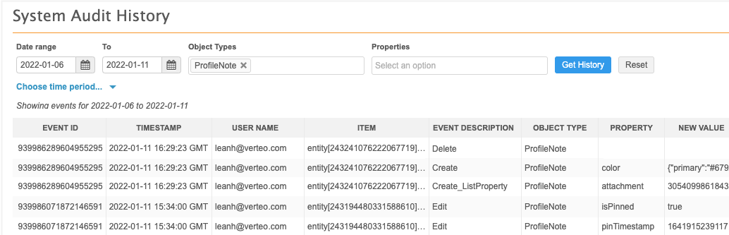 Administrators can track all notes activities (create, edit delete) in the System Audit Log.