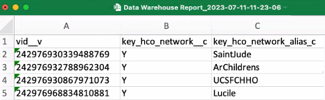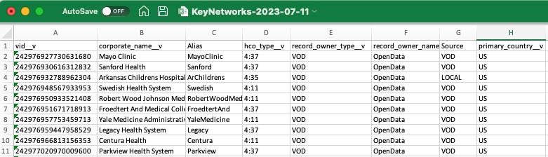 Click Export Key HCO Networks to download the list of HCOs that are flagged as key networks. Verify that the HCOs that you flagged are included in the list.