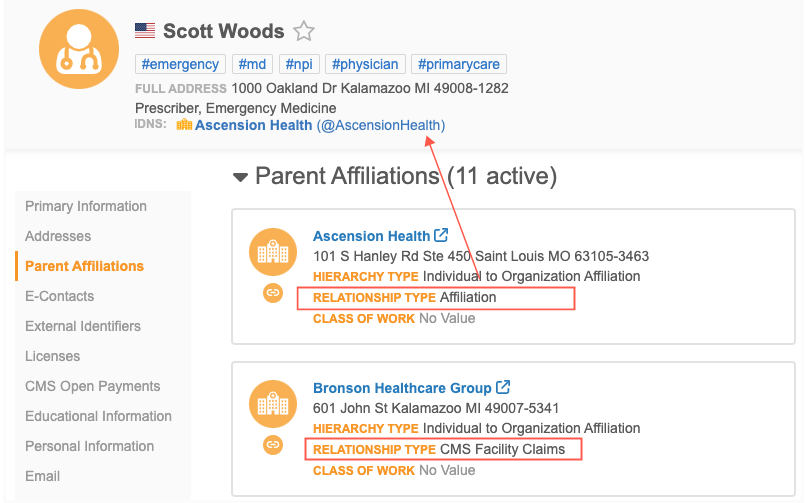 Leverage your own hierarchies as part of the calculation to affiliate HCPs and HCOs with key networks