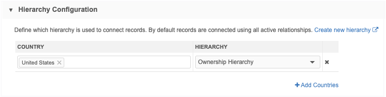 Hierarchy Configuration section - Define the hierarchy that is used to calculate the affiliated records.