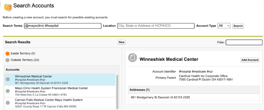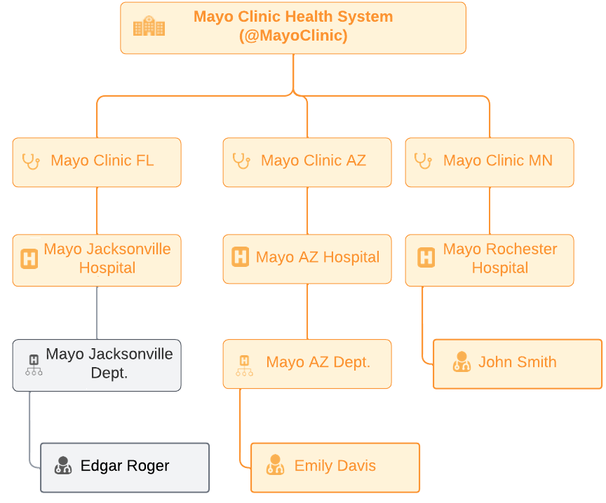 Field users can search for @mayoclinic #hospital to find all hospitals in the Mayo Clinic hierarchy.