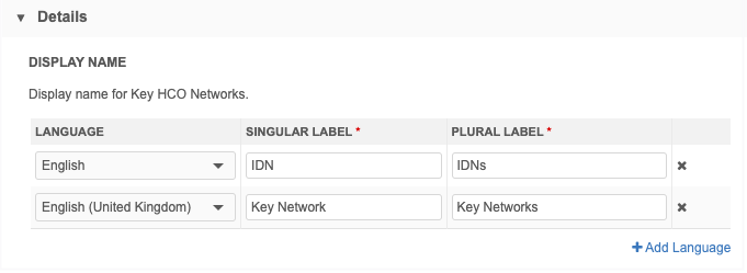 Details section - Default labels are defined for key networks/IDNs. The labels can be changed to apply to your business processes.