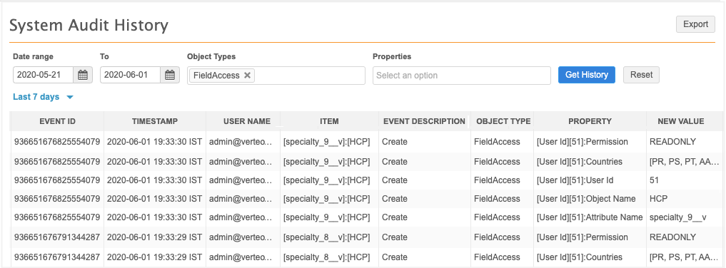 Administrators can track new restrictions and changes to existing restrictions in the System Audit Log. In the Object Type field, select FieldAccess to view all of the field restriction actions in your Network instance.