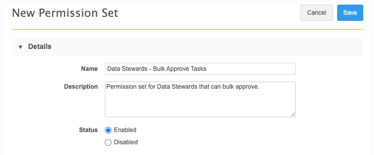 The Status is Enabled by default. When the permission set is saved, the defined users will have immediate access to the DCR Cleanup feature.