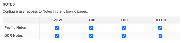 Add - Allow users to add notes. If users have Add access, they also have View access by default.
