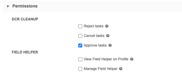 If you give users access to Reject tasks, but not Cancel tasks or Approve tasks, they will only see the option to reject tasks in the DCR Cleanup list.