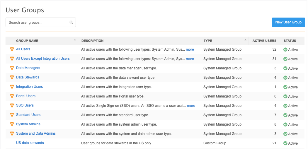 | Data Stewards | All active Data Steward users. | All active users with the Data Steward user type. |