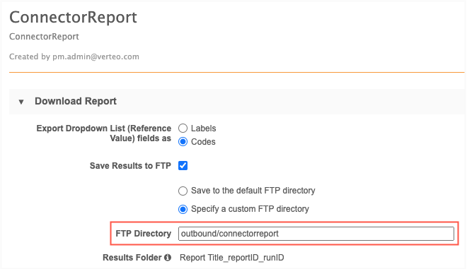The Veeva Connector can read the files generated on the FTP server from Network reports. The results are exported into unique subfolders so the Veeva Connector can find the latest .zip file during upsert jobs.