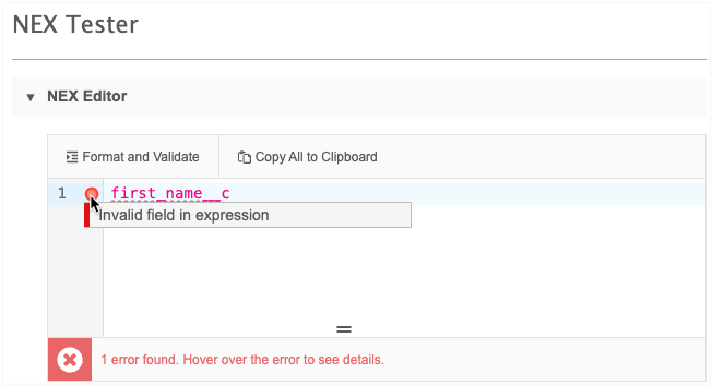 The following updates have been made to the NEX Tester feature. They apply anywhere NEX rules can be tested in Network (NEX Tester, data model fields, OpenData subscriptions, transformation rules).