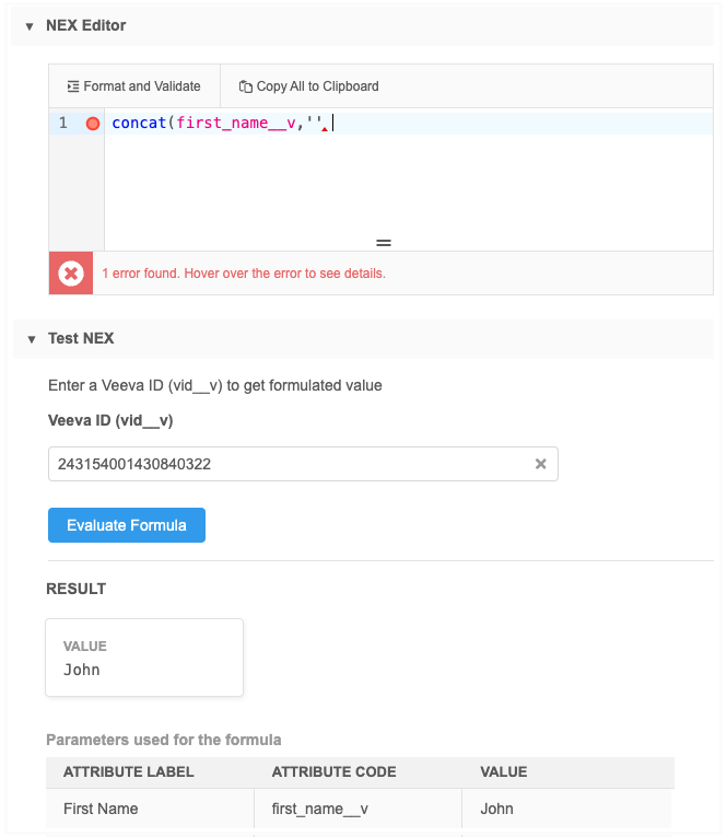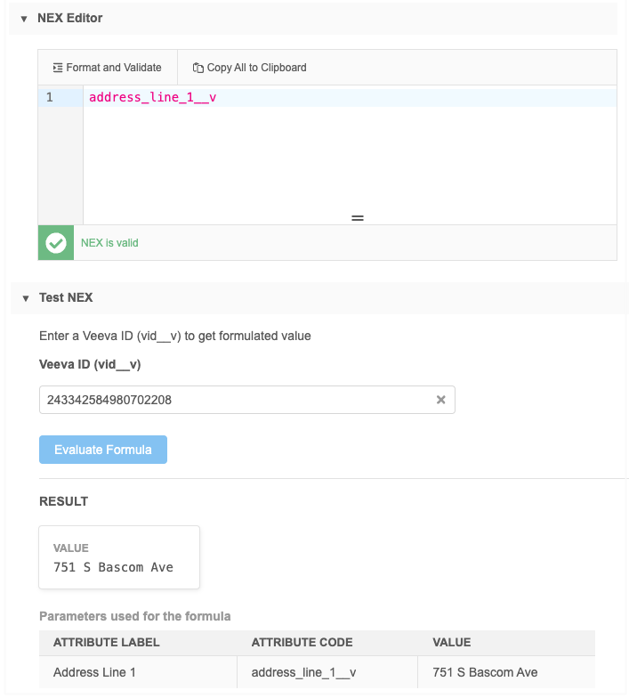 You can now use a sub-object Veeva ID to test an expression. For example, to test an expression for an address, add an address VID. Previously, only entity VIDs were supported.