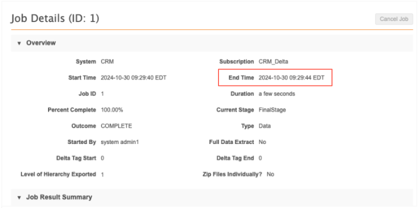 The Job Details page for all jobs now includes the time that the job ended. This can help Administrators and Data Managers troubleshoot issues.
