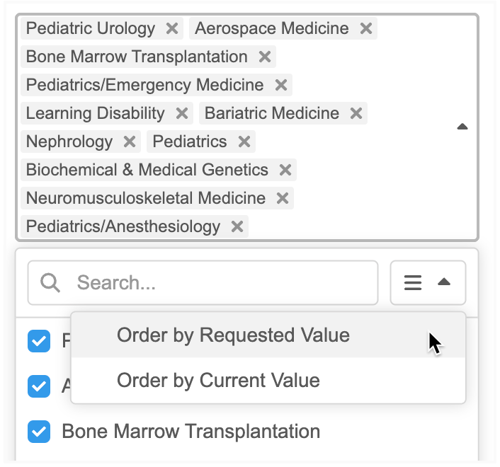 Multivalued field name - A list of the reference codes for the value sin the order they display on the record.
