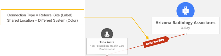 Line Label - Represents the connection between an HCP and an HCO. Either the HCP practices at the location or the HCP refers their patients to the location.