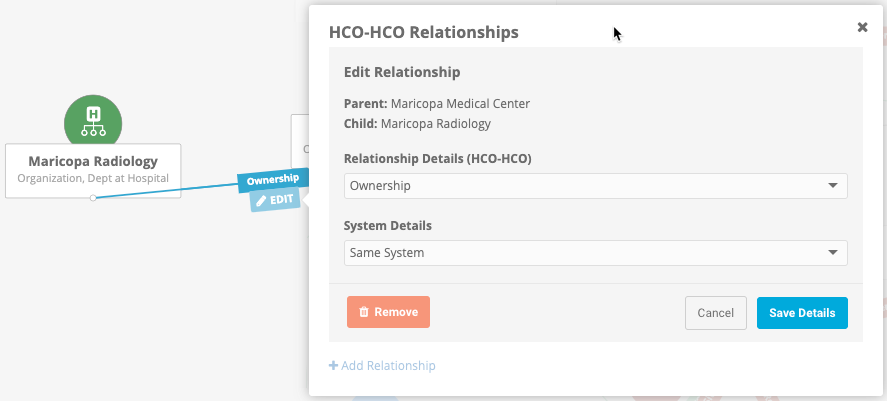 The same type of custom branding can be defined for HCO-HCO relationships.