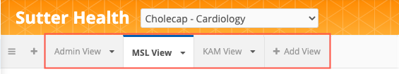 Veeva can create standard views for each of your health systems; for example, a KAM view and MSL view. These views cannot be changed by users. Submit a ticket to Veeva Support to help you to create these views. Each standard view is pre-populated with the health system.