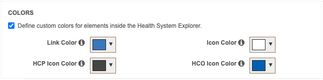 To use custom colors, select Define custom colors for elements inside the Health System Explorer.