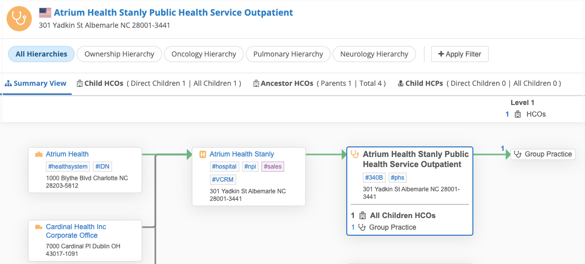 Set the Summary View tab as the first tab in Hierarchy Explorer - Display the Summary View by default when widget users open a health system so they can immediately see how the HCO is affiliated in the hierarchy.
