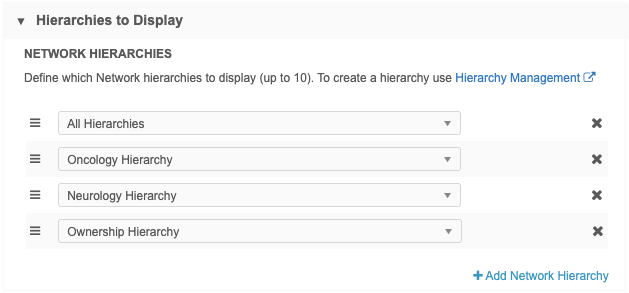 If you have custom hierarchies created by Network, those hierarchies are available to be managed from the Hierarchy Management page.