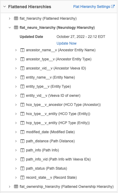 Update Flattened Hierarchy Table - Click to manually update the table.