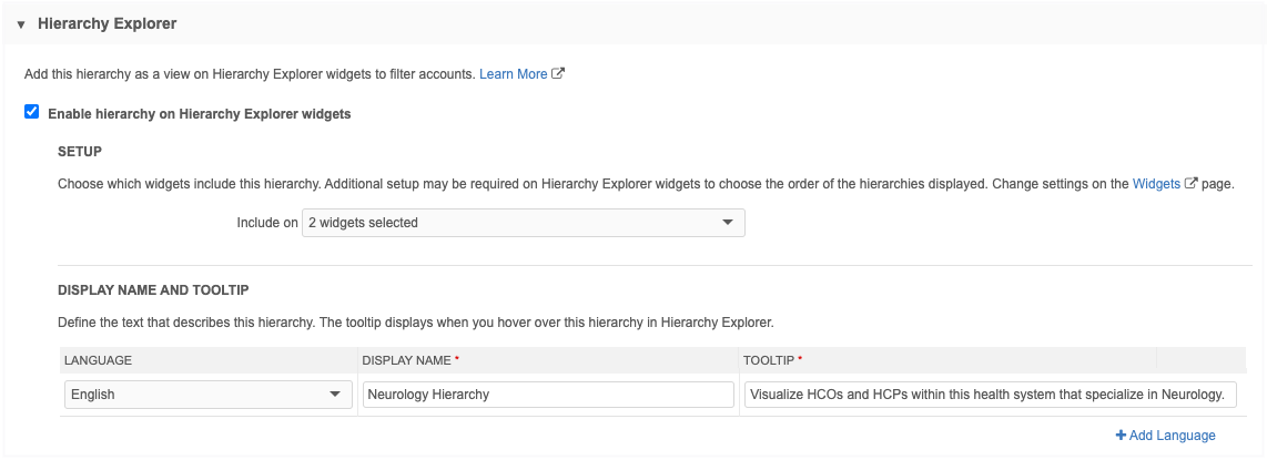 Enable hierarchy view on Hierarchy Explorer widgets - Select this option to add this hierarchy to your widgets.