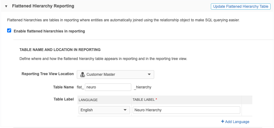 Update Flattened Hierarchy Table - Click to manually update the reporting table.