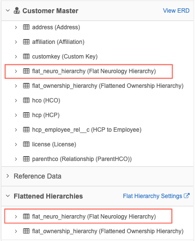 Note: This table is not available by default in the SQL Query Editor. To use this hierarchy table, click the Update Flattened Hierarchy Table or schedule the data update. After the data is updated, the table will be available.