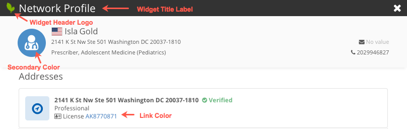 To understand how these style settings map to the widget, review the branding example below.