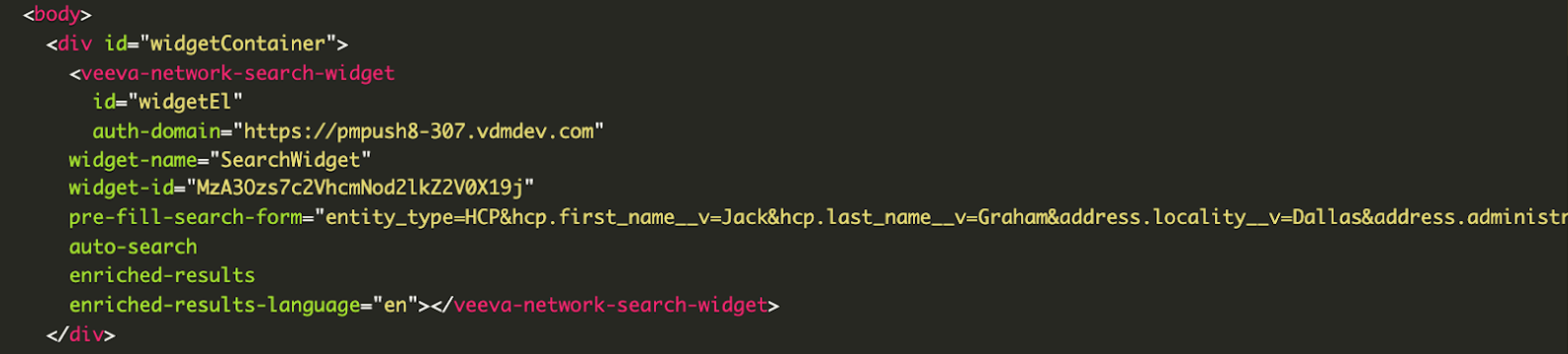 Web developers can add the properties to the veeva-network-search-widget element in the widget code.