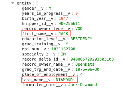 When the user downloads the record, the data is transformed in the downstream application and in the JSON that is returned.
